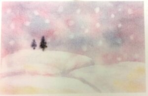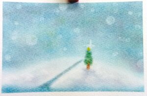 「雪道」では、好みの空の色になるよう工夫しました。