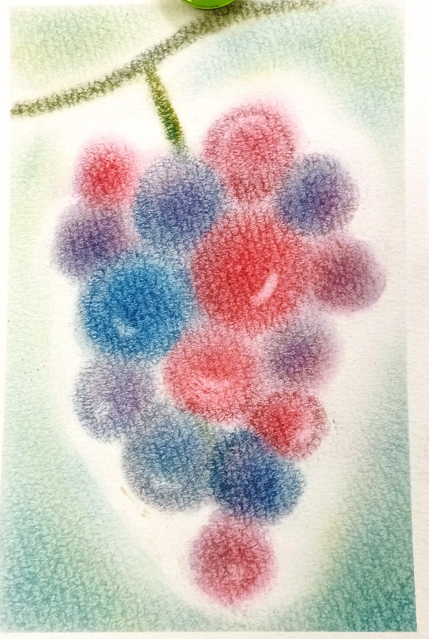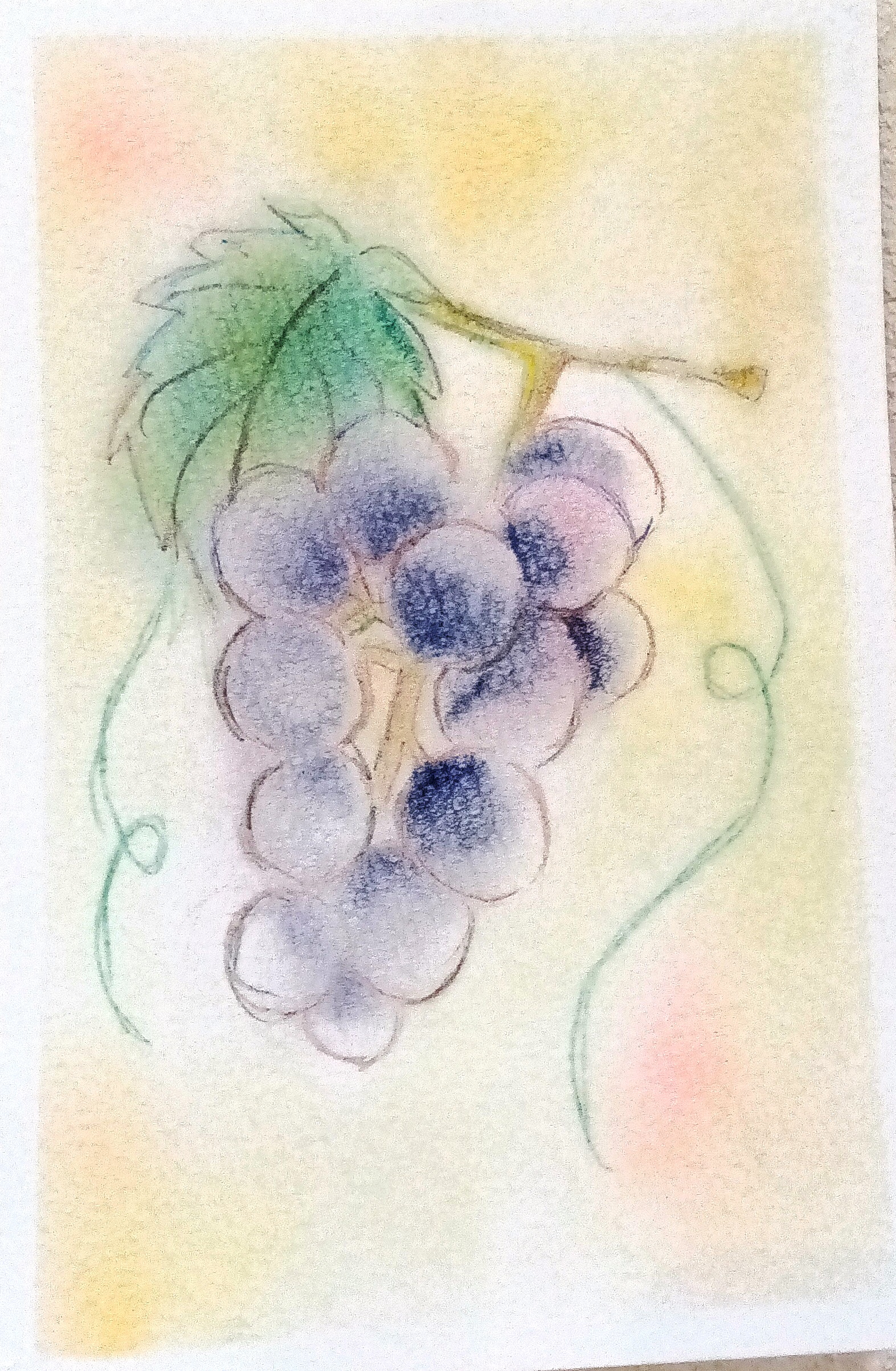 本日の土曜日クラスでは、『ぶどう』で混色の体験をした後、好きなものを描きました。